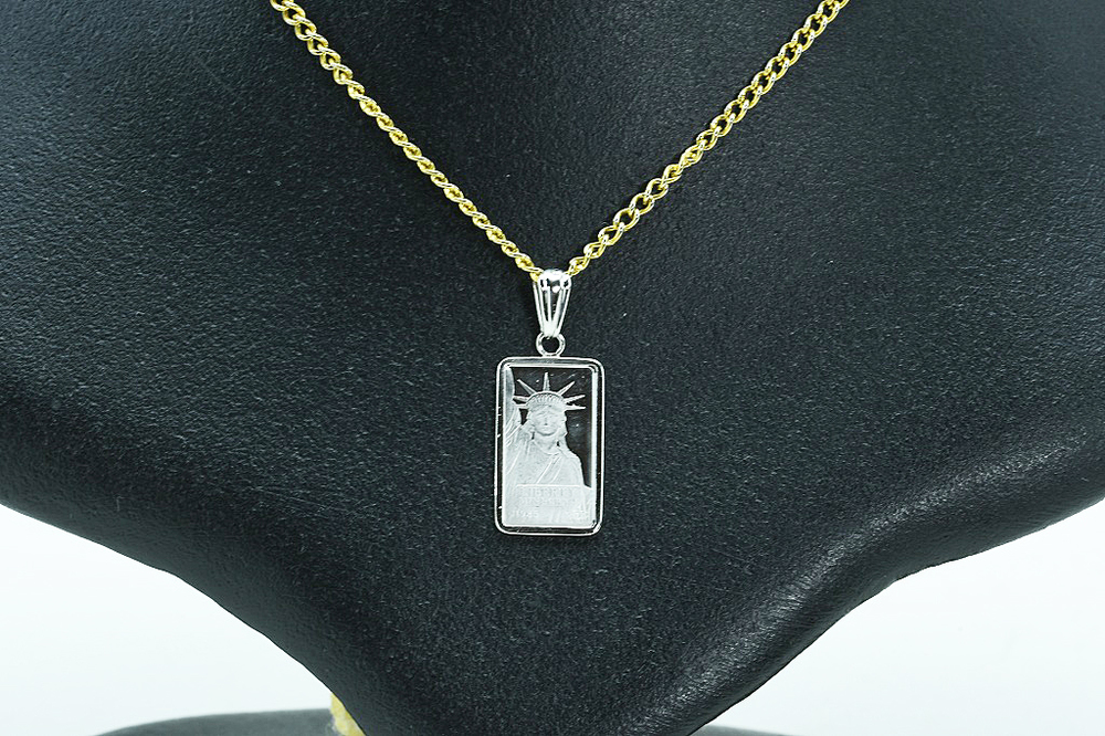 Pt900枠トップ クレディスイス Pt1000プレート 自由の女神像 1g付 1.4g の品物となります。Pt900枠にクレディスイスの自由の女神像Pt1000純プラチナプレート1gが付いたペンダントトップとなります。お手持ちのネックレスに通るかどうかは、「金具内径サイズ」を参照ください。こちらの品物は、ペンダントトップのみの販売で、ネックレスは付属しておりません。ご了承ください。発送時はフェルト製の小さな袋に入れての発送となります。