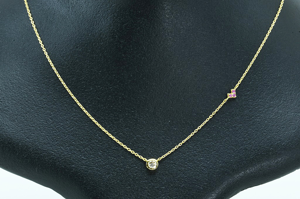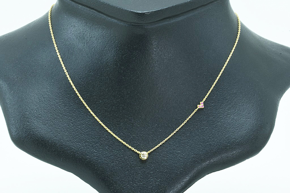 品名 | K18ネックレス ダイヤ/色石付 D0.10 1.5g 引き輪金具 中古品 洗浄 程度A | 素材 | K18(18金 イエローゴールド) |