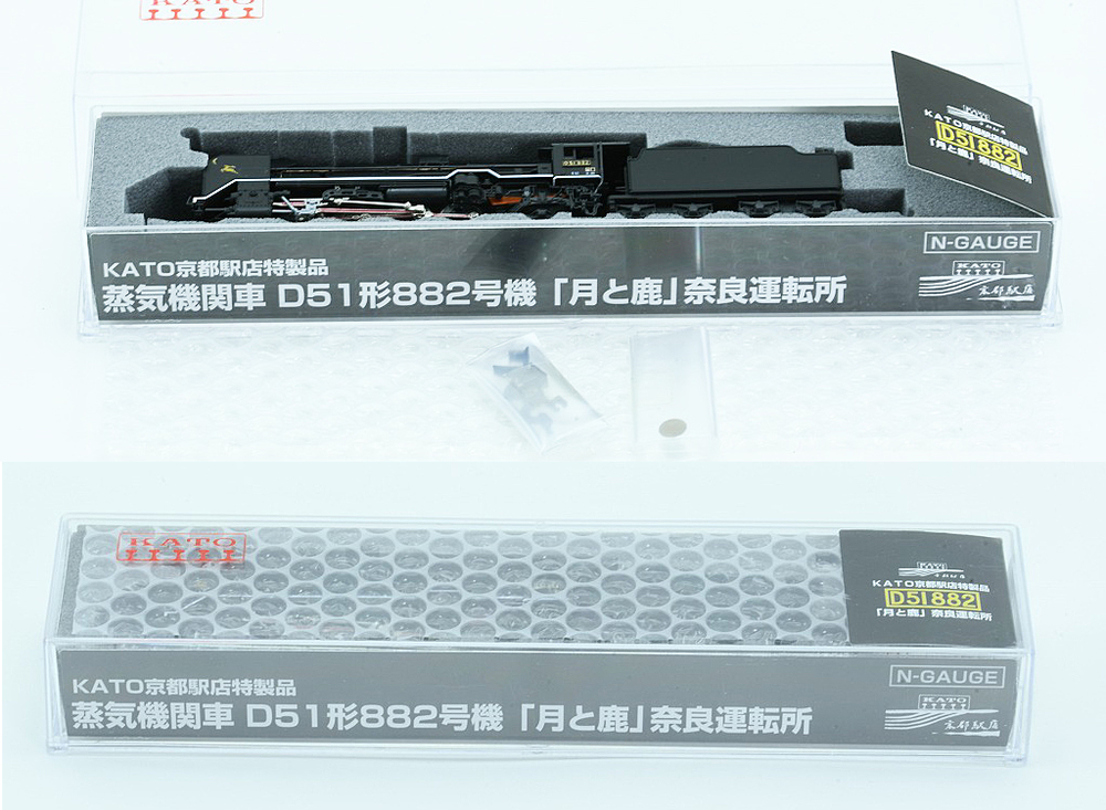 | 品名 | KATO 京都駅店特製品 蒸気機関車 D51形882号機 月と鹿 奈良運転所 Nゲージ 動作確認走行のみ 未使用品 程度SA | 品番 | D51 882 |