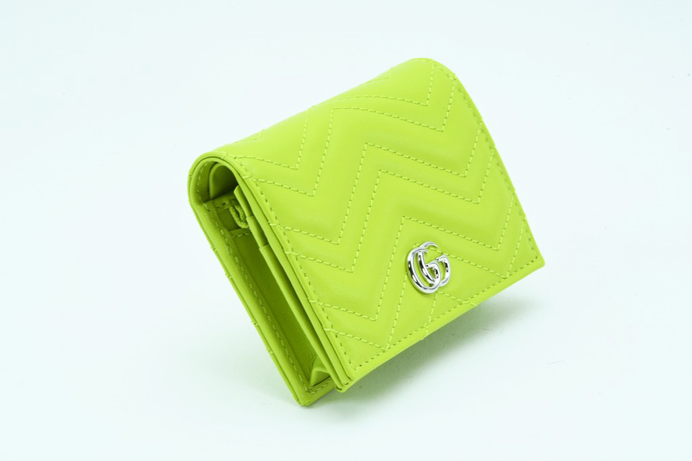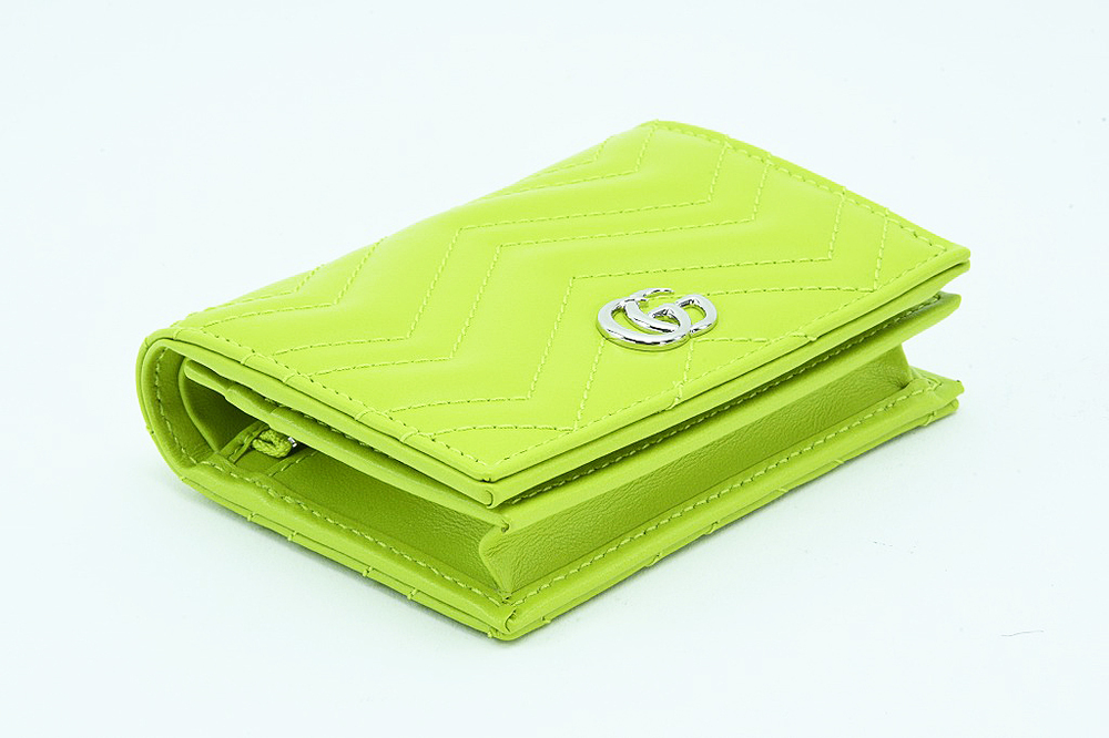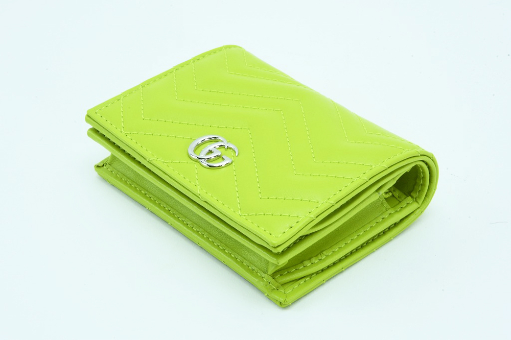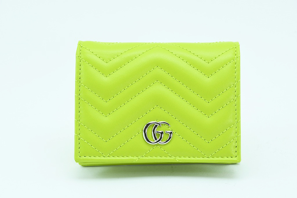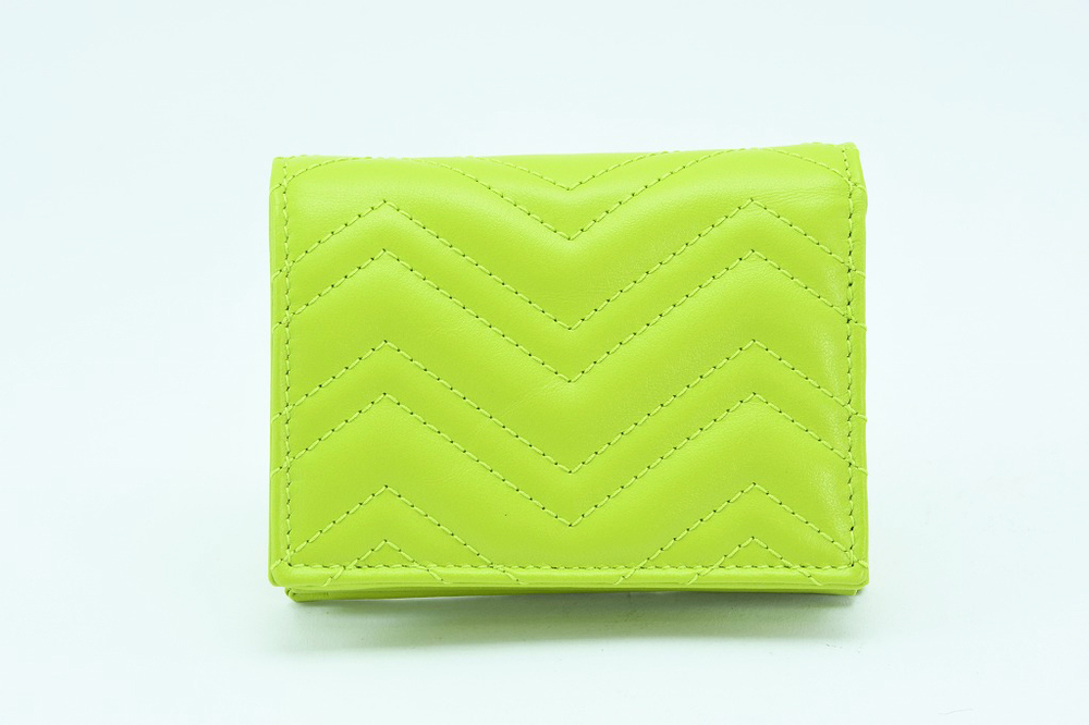 グッチ GUCCI ダブルG マーモント ミニウォレット 466492 ライトグリーン(廃番色) 未使用品 程度S となります。ダブルGが印象的なGGマーモントラインの小さな2つ折り財布となります。こちらのライトグリーン色は、現行ラインでは廃番色となっております。コンパクトなミニ財布ですが、札入れ、カード入れ、小銭入れと、サブ財布としてポシャットやポーチに入れてお出かけすることが可能です。