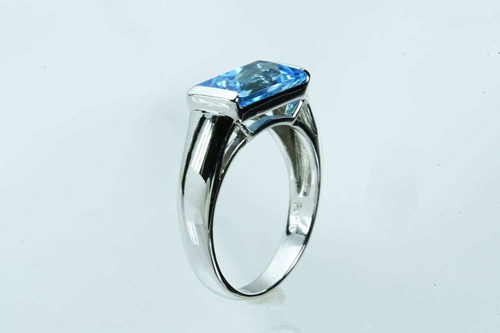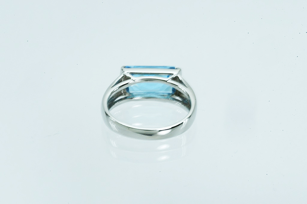 Pt900リング ブルートパーズ 5.0g #9 鑑別 仕上げ 中古品 となります。四角い大きな色石に用いられる「ステップカット」という形状のブルートパーズが1石付いております。深みのあるブルーが爽やかな印象のリングです。鑑別書がございます。