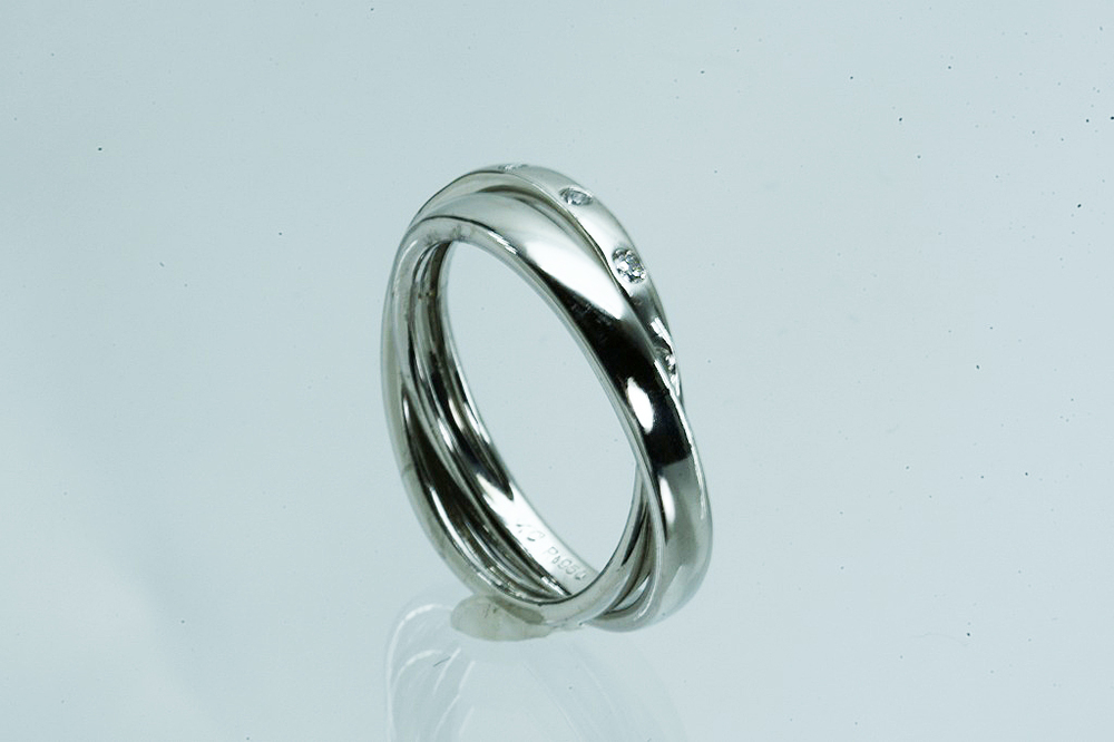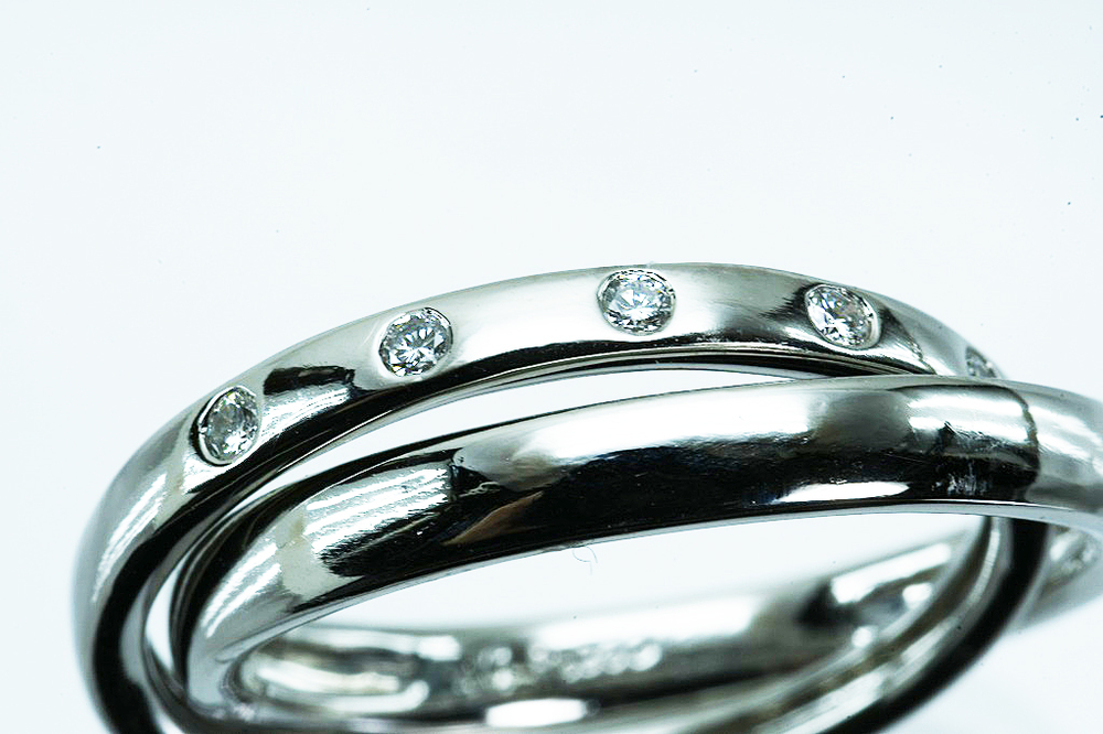 中古品の品物となります。宝石工房にて仕上げ(磨き)・洗浄処理しております。よく使用された2連リングを仕上げいたしましたので、よく観察するとリング表面のうねりがあるのがわかります。中古品を仕上げ・洗浄しておりますので、まだ小傷が残っております事、ご了承ください。店頭展示しておりますので、指輪本体に小傷がさらに付く可能性がございます。写真や動画で程度を確認していただけます。