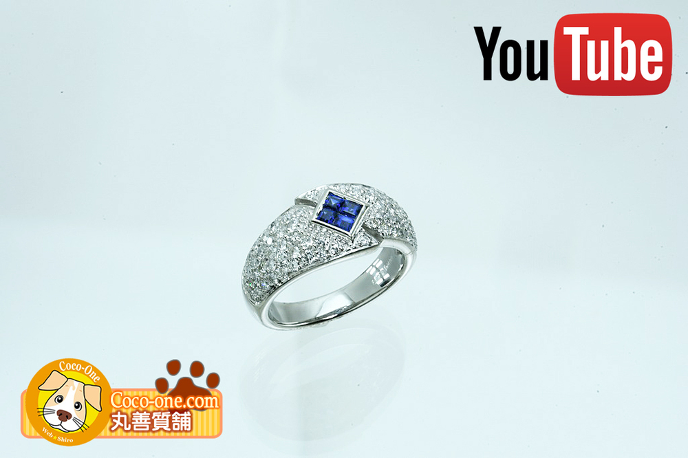 K18リング サファイア/ダイヤ デザインリング S0.90/D0.365 #9.5 3.6g