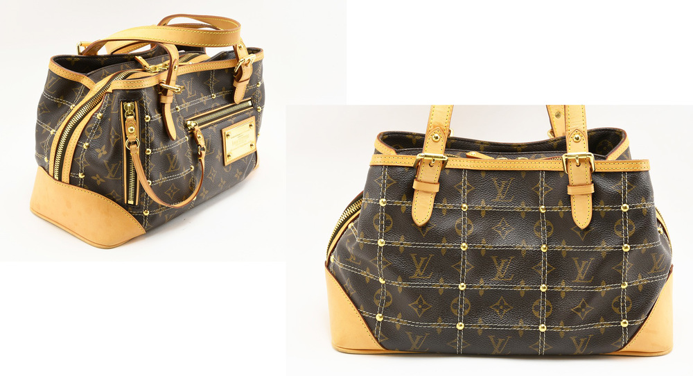 2007年春夏モデルとして期間限定で発売されたリヴェット(リベット)バッグです。モノグラム地に縦横水平のキルティング処理とリベットが特徴です。内部は大きく3つに分かれており、中央は大容量のチャック付きで、携帯・内ポケットがあります。両サイドのポケットの開口部は、マグネットで留めるタイプです。前にはパスケース等小物を収納するチャック付きポケットがあります。デザイン的にも今発売されていてもおかしくない、大容量のトート系バッグです。