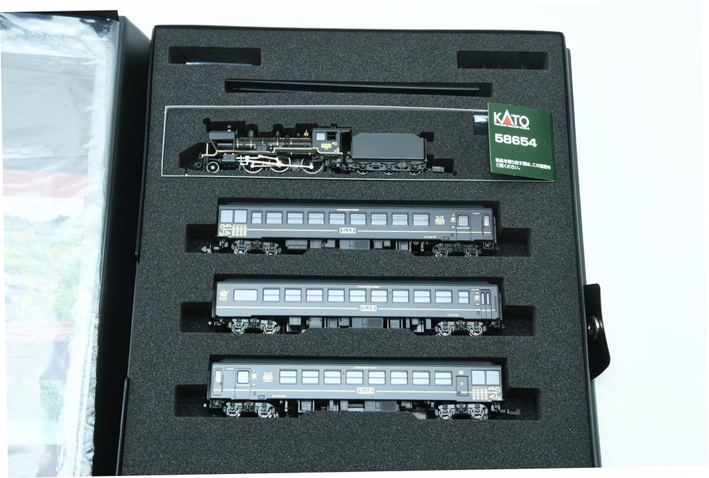 KATO 10-1727 特別企画品 58654+50系「SL人吉」4両セット 動作確認走行のみ 未使用品 となります。非常に細かく作りこまれた車両となります。ケースからの出し入れは、非常に気を遣う車両達です。