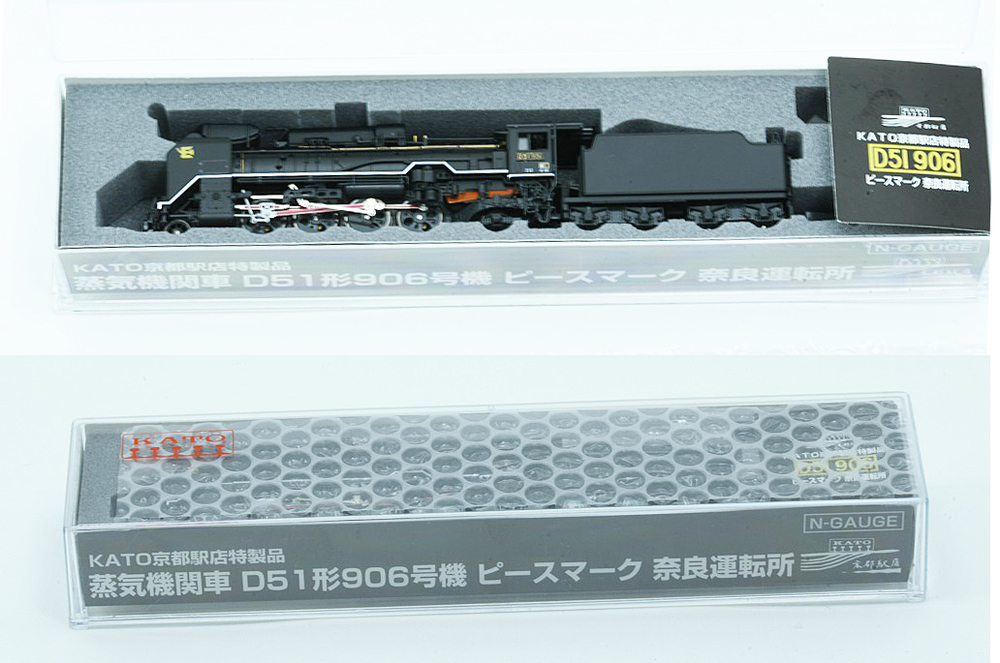 | 品名 | KATO 京都駅店特製品 蒸気機関車 D51形906号機 ピースマーク 奈良運転所 Nゲージ 動作確認走行のみ 未使用品 程度SA | 品番 | D51 906 |