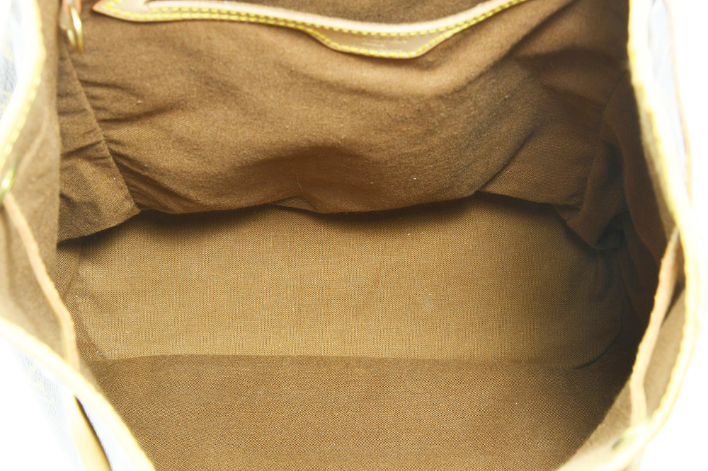 中古品の品物となります。モノグラム地は大きな汚れや傷などなく、きれいな状態です。ヌメ革は経年劣化で色が変色しております。底はどうしても汚れが付きますが、シミはございません。他部分のヌメ革には雨シミなどほとんどなく、きれいにヌメ焼けが進行している状態です。内部底部分には、使用によってできた表面の毛羽立ちのような傷がございます。大きなシミや汚れはございません。内部から少し石鹸臭がいたします。ショルダーストラップは破れ、スレ等なくしっかりしており、きれいな状態です。底角には擦り傷が見られます。保管時に底部分をたたむようにして保管されておりましたので、折り目が付いており、きれいに荷物を入れないと自立しない状態です。使用していると折り目も徐々になくなっていくレベルだと推測されます。写真や動画で程度を確認していただけます。