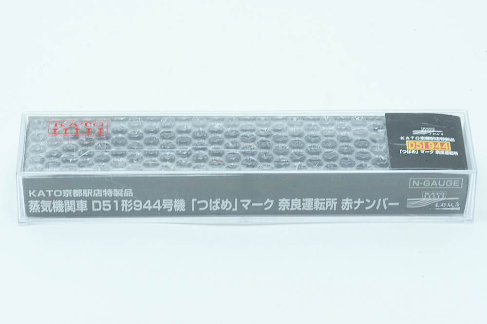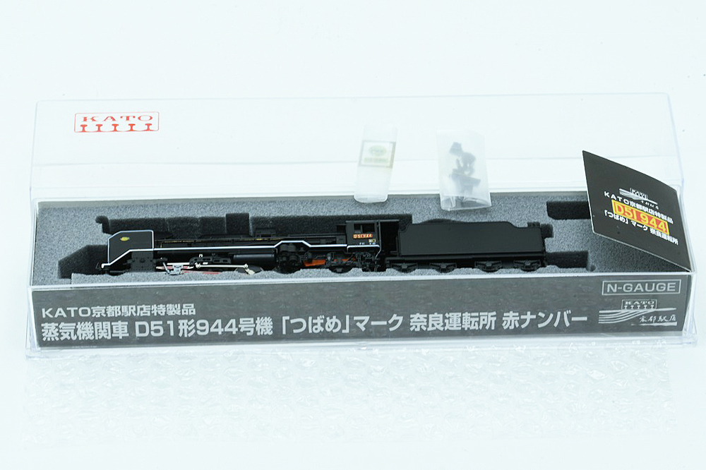 | 品名 | KATO 京都駅店特製品 蒸気機関車 D51形944号機 つばめマーク 奈良運転所 赤ナンバー Nゲージ 動作確認走行のみ 未使用品 程度SA | 品番 | D51 944 |