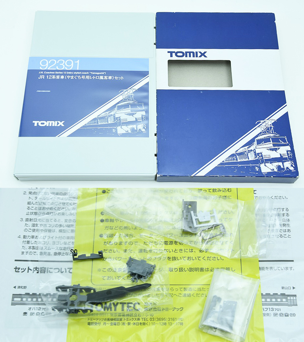 TOMIX トミクッス 92391 JR12系客車 やまぐち号用レトロ客車 5両セット 中古品 程度SA となります。2011年発売の品物で、購入された時期はわかりませんが、長期保管されたいた品物となります。標準仕様のアーノルドカプラーからナックルカプラーに交換されております。細かな作り込みもしっかりされており、走行を楽しんでいただけると思います。