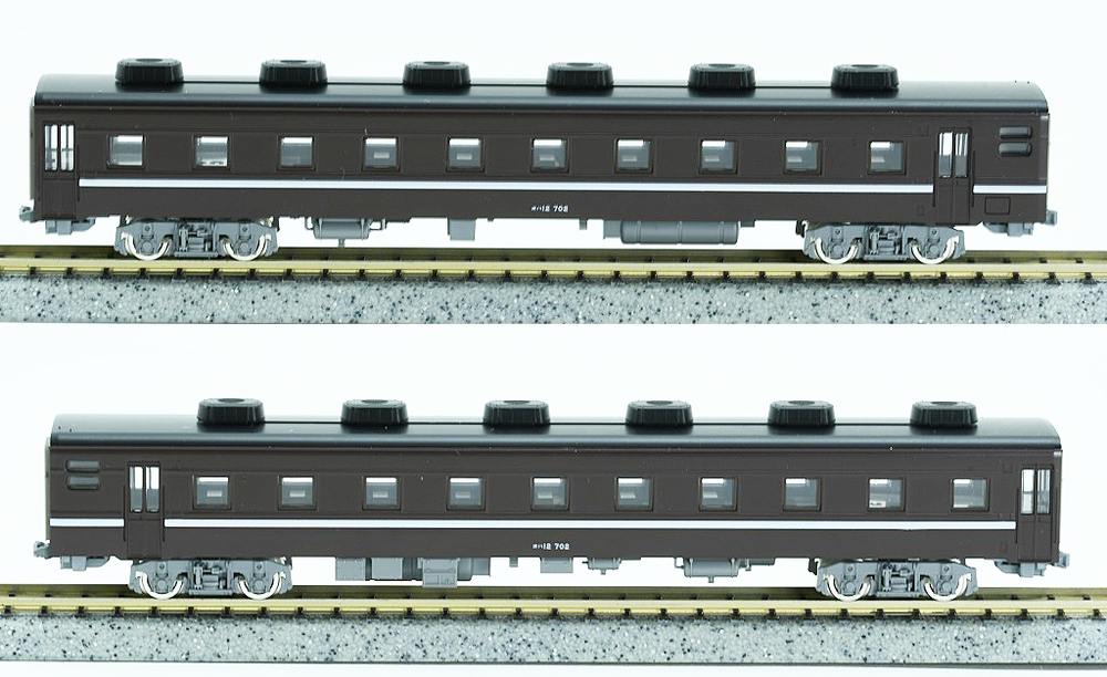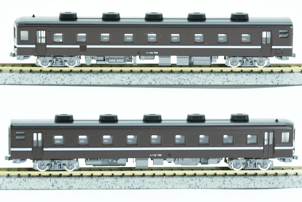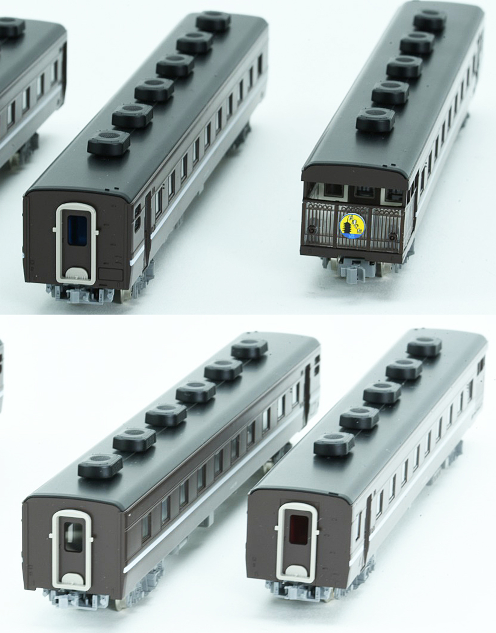 非常にきれいな中古品の品物となります。テールマークが取り付けられておりますので、何度か走行させた客車だと推測されます。付属品の袋が一部開封されております。車両は非常にきれいな状態です。発売時の資料によるとアーノルドカプラー仕様なのですが、すべてナックルカプラーに交換されております。もともとのアーノルドカプラーは付属しておりません。外箱は保管時についたと思われる傷がございます。動作確認のため走行させております。ご了承ください。