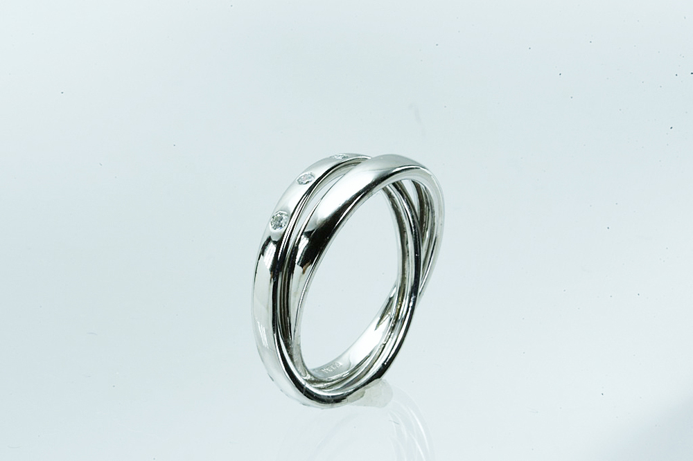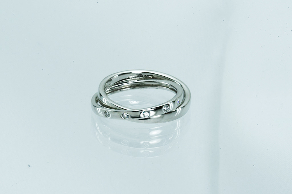 中古品の品物となります。宝石工房にて仕上げ(磨き)・洗浄処理しております。よく使用された2連リングを仕上げいたしましたので、よく観察するとリング表面のうねりがあるのがわかります。中古品を仕上げ・洗浄しておりますので、まだ小傷が残っております事、ご了承ください。店頭展示しておりますので、指輪本体に小傷がさらに付く可能性がございます。写真や動画で程度を確認していただけます。