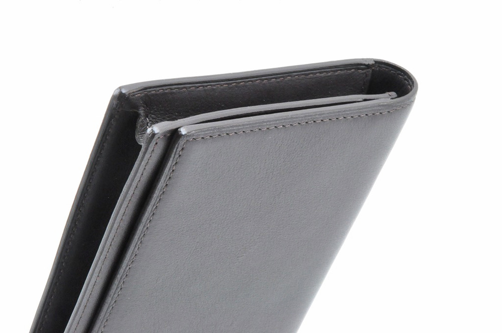 ダンヒルエディションラインの長札入れとなります。5年ほど前にシリーズであったラインの札入れです。色はダークブラウンで2つ折りとなります。札入れ部にはマチがしっかりあります。カードは見開き右手に6枚収納可能。カーフで肌触りのやわらかいものが使用されています。札入れ1カ所、カード入れ6カ所、小物入れ2カ所