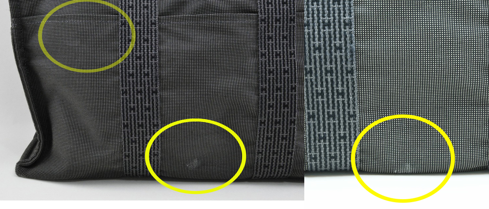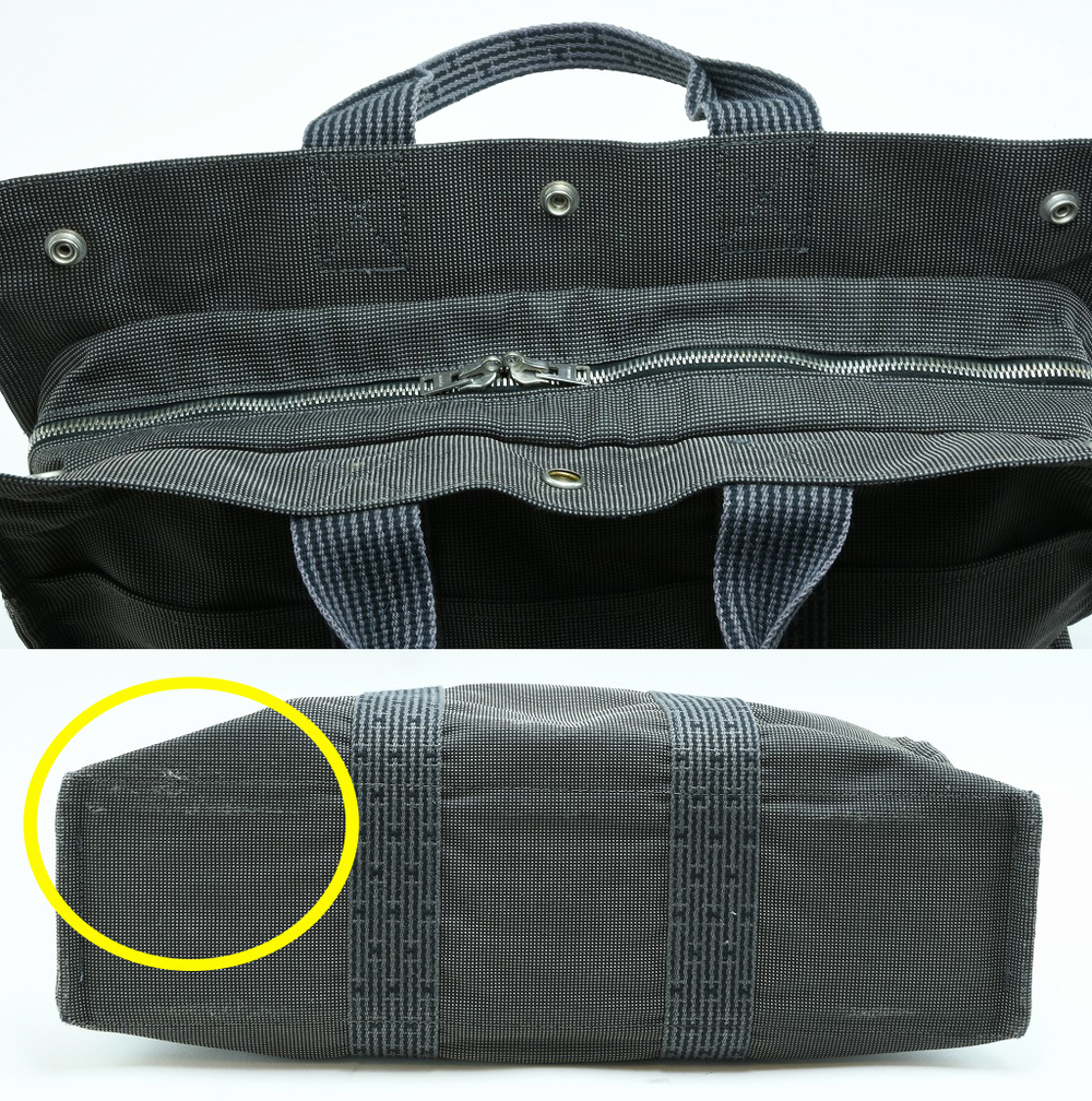エルメスのトートバッグの代名詞のエールライントートです。丈夫なパラシュートキャンバスを使用、コットンより丈夫で汚れにくい素材です。チャックは頭が小さいので初期型だと判断できます。チャック頭にキーホルダー等付けた方が、開け閉めしやすいと思います。チャック開け閉めがしにくかったので、調整しております。A4サイズが横向けに入りますので、通勤通学に最適だと思います。