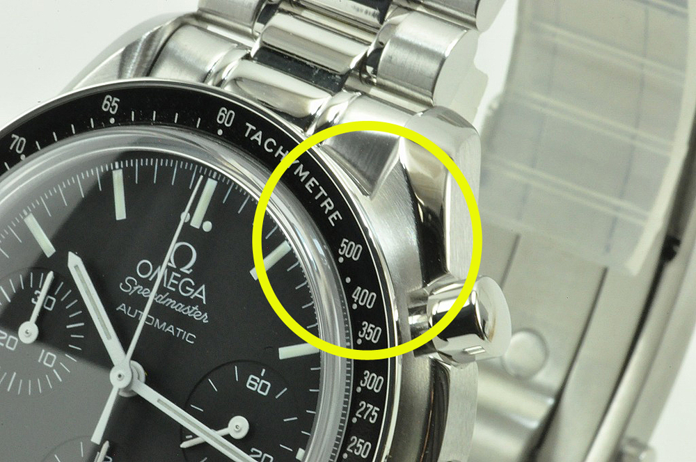 中古品の品物となります。弊社提携の時計工房にて機械点検、仕上げを行っております。洗浄・仕上げ(磨き)を行っておりますので、綺麗な状態です。ベゼルタキメーター500の部分に当て傷のヘコミ、右上ラグ角に小さな当て傷、本体側面にヘアライン傷が2カ所程度残っています。バックル部分に深い傷がありましたので、入念に仕上げを行ってもらった結果、仕上げ部分にムラがあり、仕上げをしたことがわかる状態です。機械は姿勢差がありますが、+7~+11秒/日となります。国際保証書には2012年購入日の日付と、大手量販店のハンコがあります。写真や動画にて品物の状態を確認していただけます。