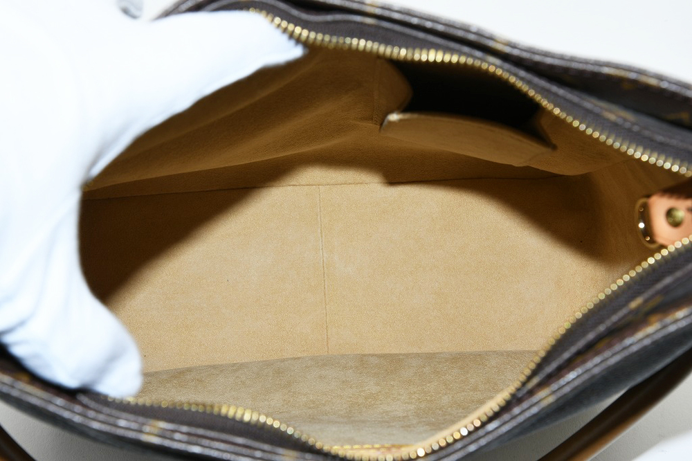 中古品の品物となります。年式は古い品物ですが、保管されていた期間が長く、全体的にそこそこきれいな状態です。モノグラム地には大きな汚れ、傷、シミ等はなく、モノグラム地(PVC地)の経年劣化は少しみられますが、綺麗な状態です。ワンショルダーのハンドルは、全体的に均一にヤケがすすんでおります。モノグラム地とスレ、ハンドル上部内側に黒い汚れがございます。ハンドル取り付け部分側面に、擦った擦り傷がございます。ヌメ表面が少し白っぽくなっておりますが、目立つようなものではございません。内部アルカンタラ素材には使用に伴う小傷がございます。大きな傷、シミ、汚れはなく、比較的綺麗な状態です。写真や動画で程度を確認していただけます。
