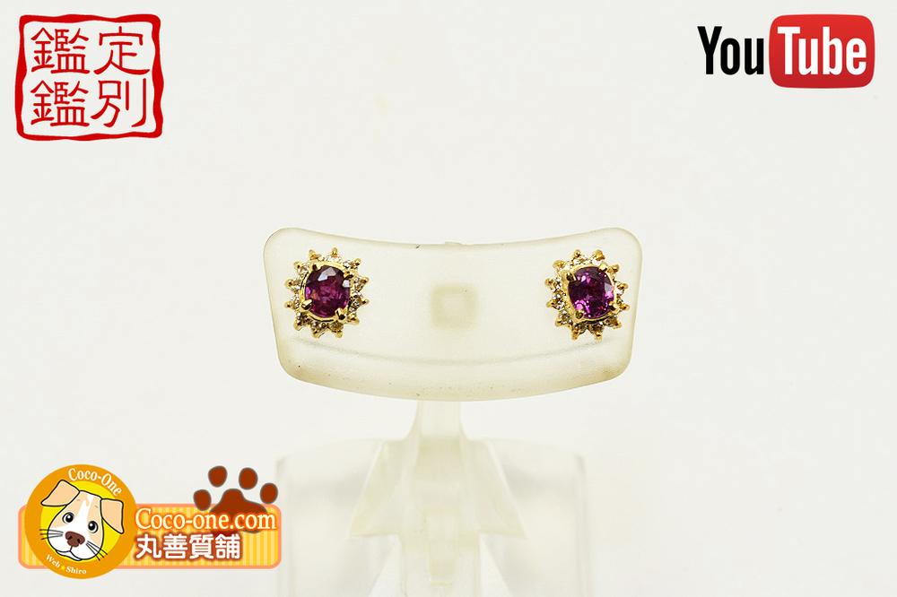 K18ピアス ルビー/ダイヤ付 石目なし 1.2g 仕上げ 鑑別 中古品 程度A